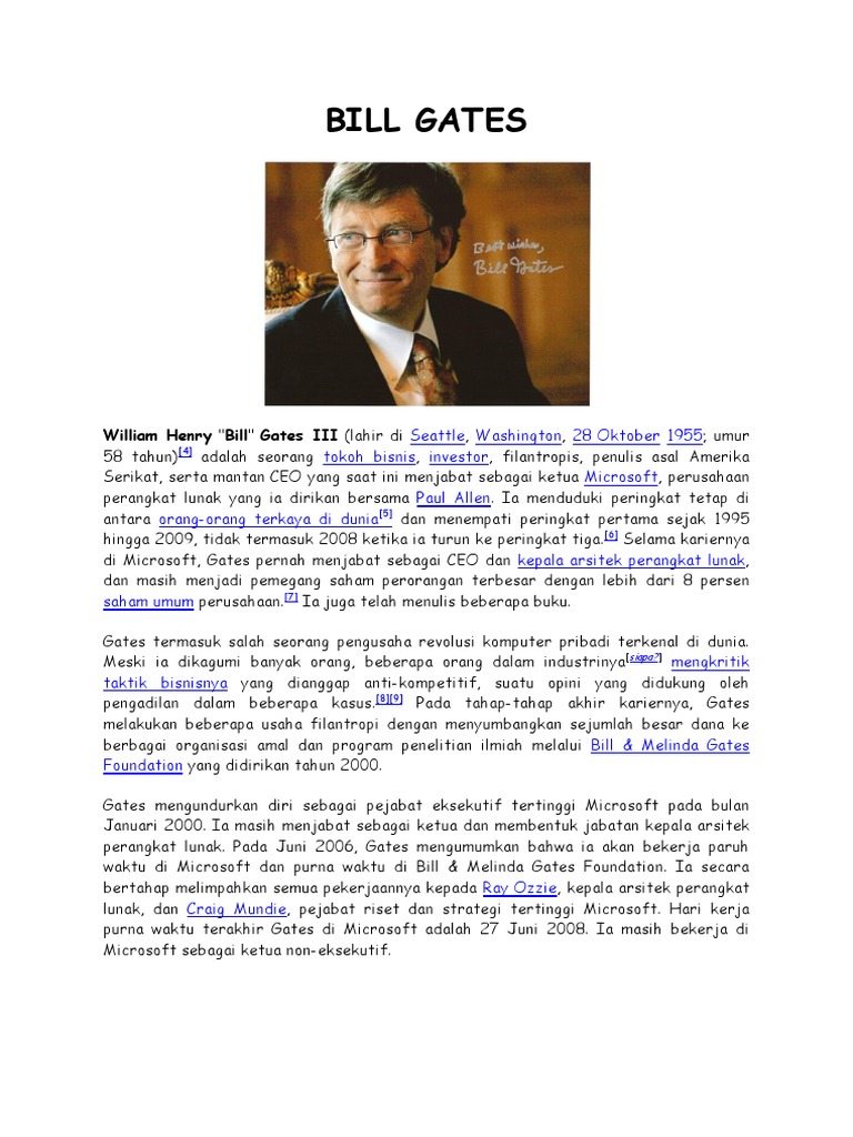 Biografi Singkat Bill Gates Dalam Bahasa Inggris