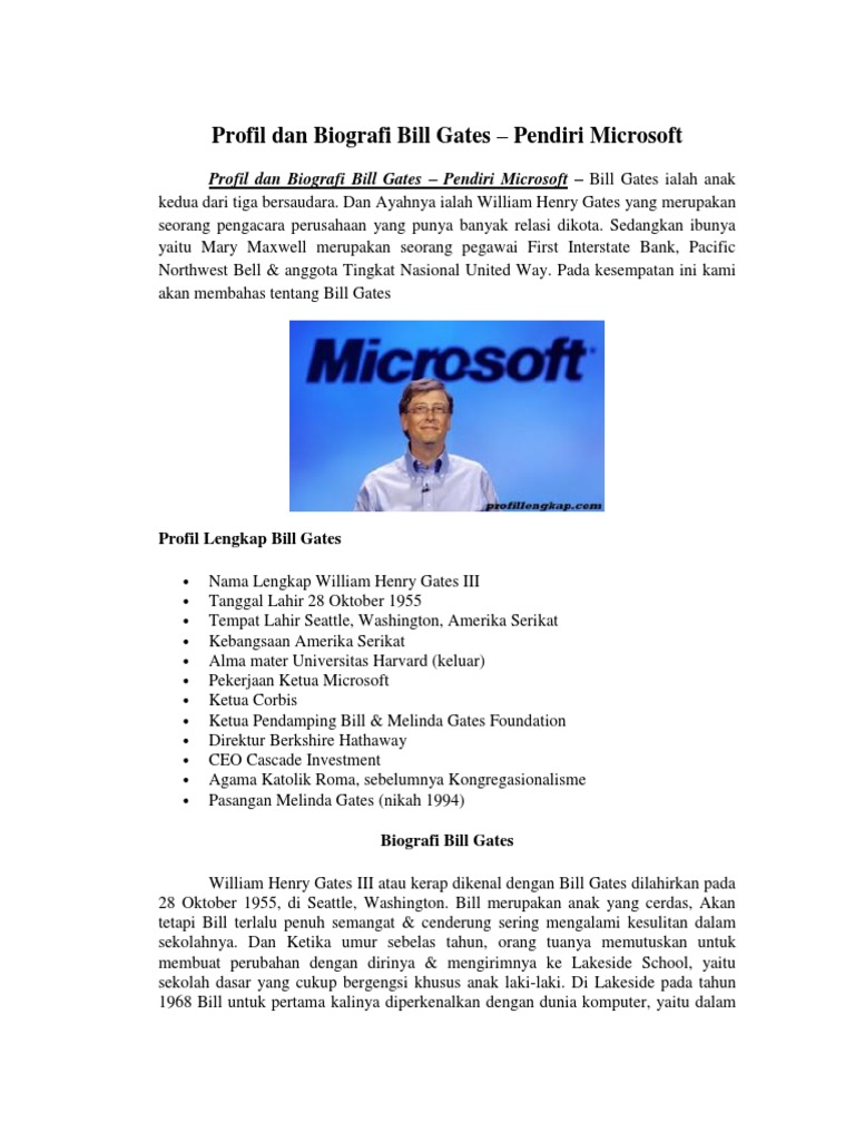 pengetahuan umum: Biografi Bill Gates (Pendiri Microsoft Corp.)