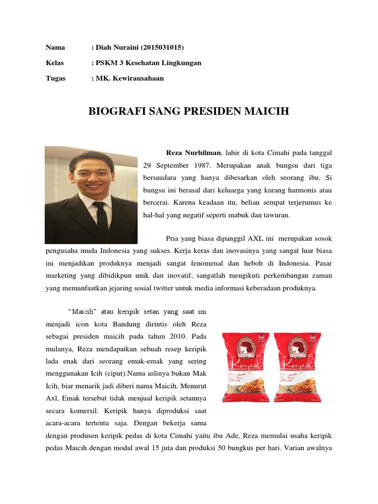 Biografi Reza Axl Nurhilman Sang Presiden Maicih - [DOCX Document]