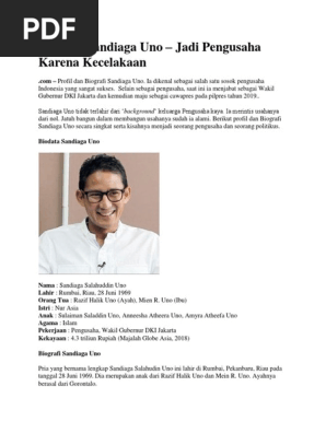 Biodata Sandiaga Uno.docx - Biodata Sandiaga Uno Nama Sandiaga Salahuddin Uno Lahir Rumbai Riau 28 Juni 1969 Orang Tua Razif Halik Uno(Ayah Mien R | Course Hero