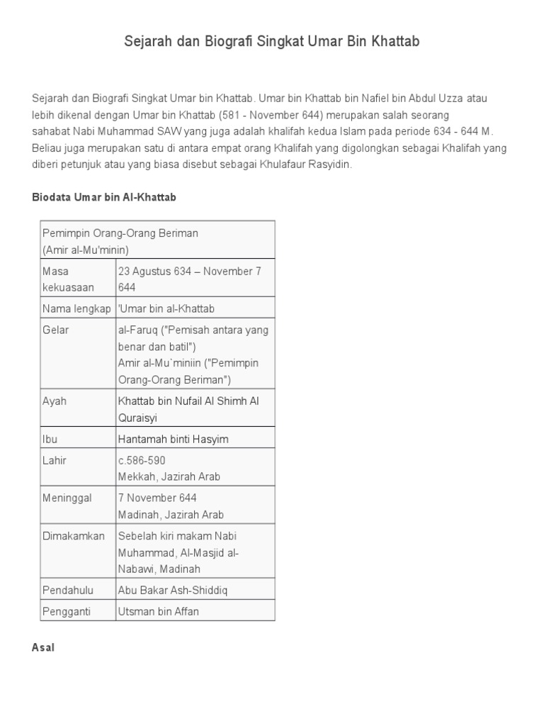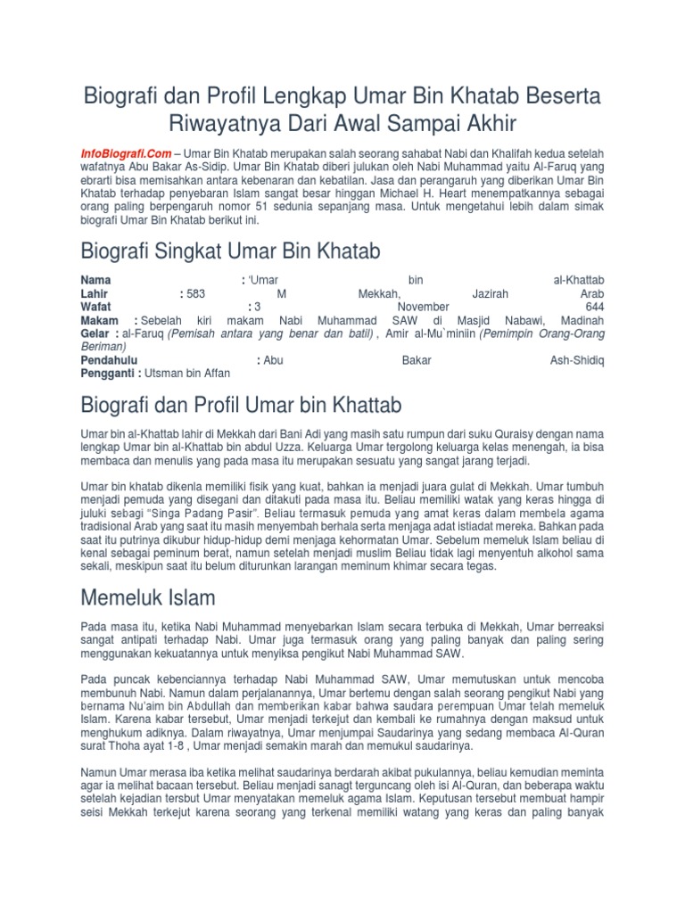 Sejarah Dan Biografi Singkat Umar Bin Khattab