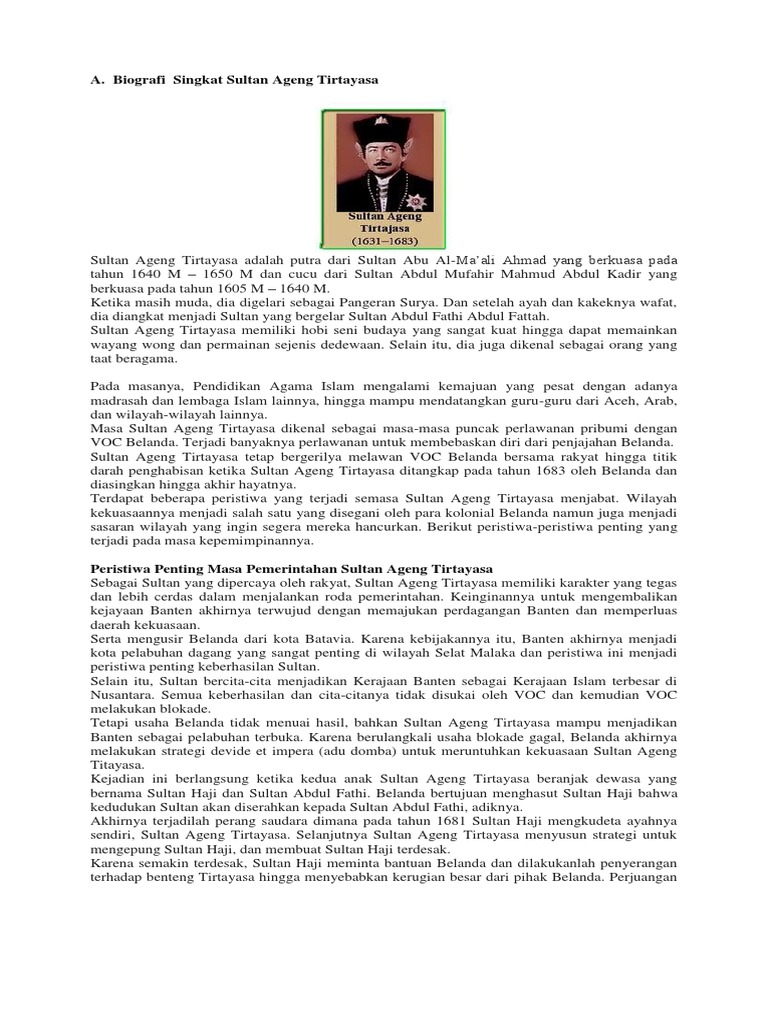 Apa yang anda ketahui tentang biografi Sultan Ageng Tirtayasa dari Banten ? - People - Dictio Community