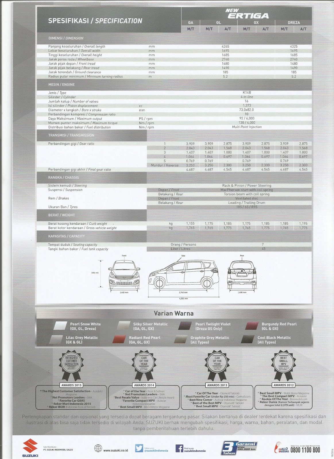 Suzuki Ertiga (2012-2018) Brochure | Download & Read all Specifications | Oto