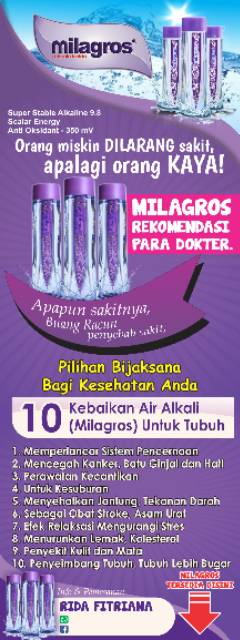 Jual Air Milagros 081327570786: Air Kesehatan MIlagros | Agen Milagros Bekasi | WhatsApp 081327570786
