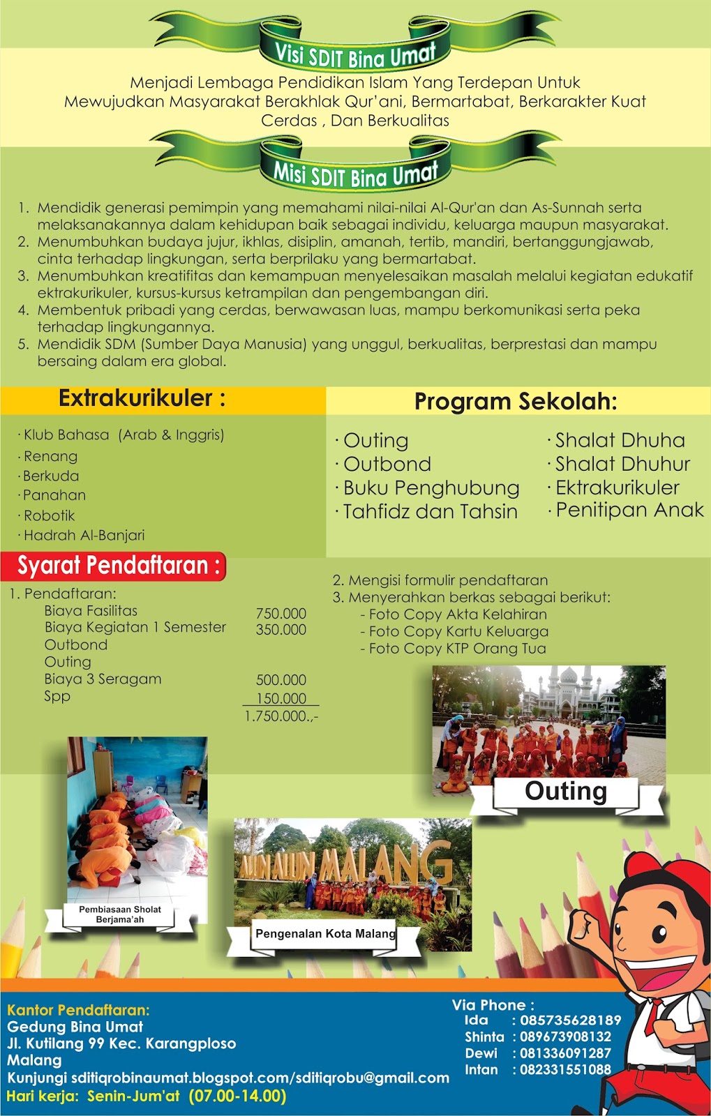 SD ISLAM TERPADU IQRO' KARANGPLOSO MALANG: Brosur Penerimaan Siswa Baru Tahun Ajaran 2016-2017 (SDIT Berbasis Nilai-nilai Karakter Mencetak Generasi Qur’ani) Full Day School. Karang Ploso-Malang
