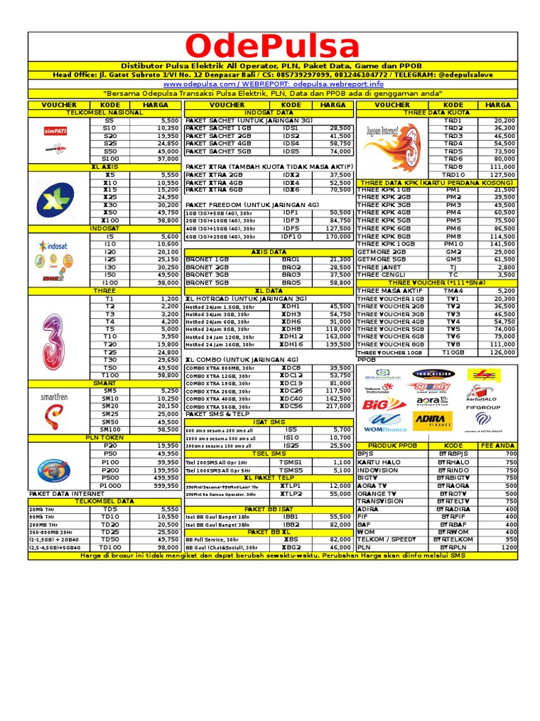 ARTICLE | Download Brosur iklan dan Daftar Harga Pulsa & Kuota Internet EXCEL/XLSX - OTAK PULSA - GAMES & PPOB