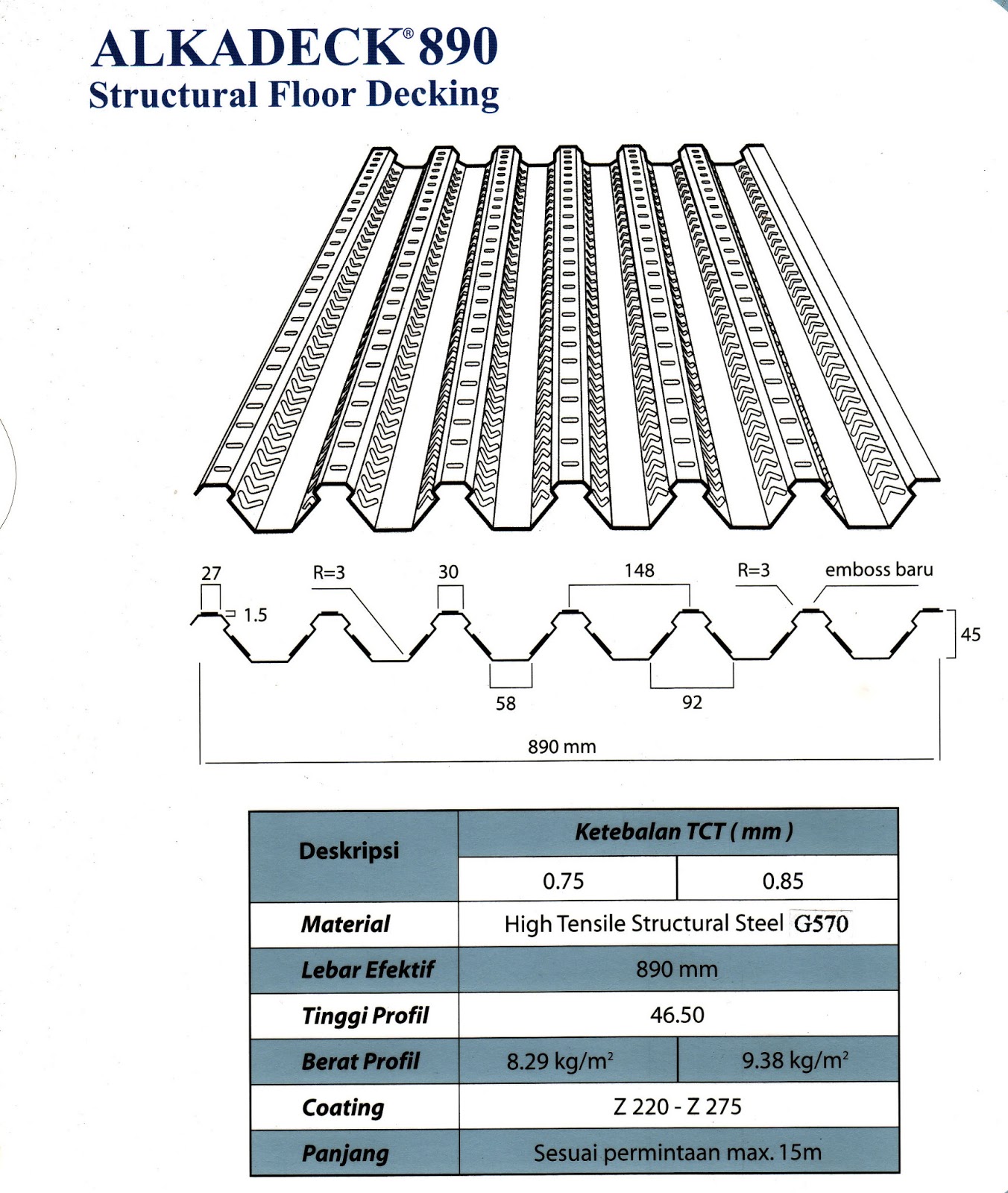 Supplier Bahan Bangunan: ALKADECK 890 | DECKING | BONDEK