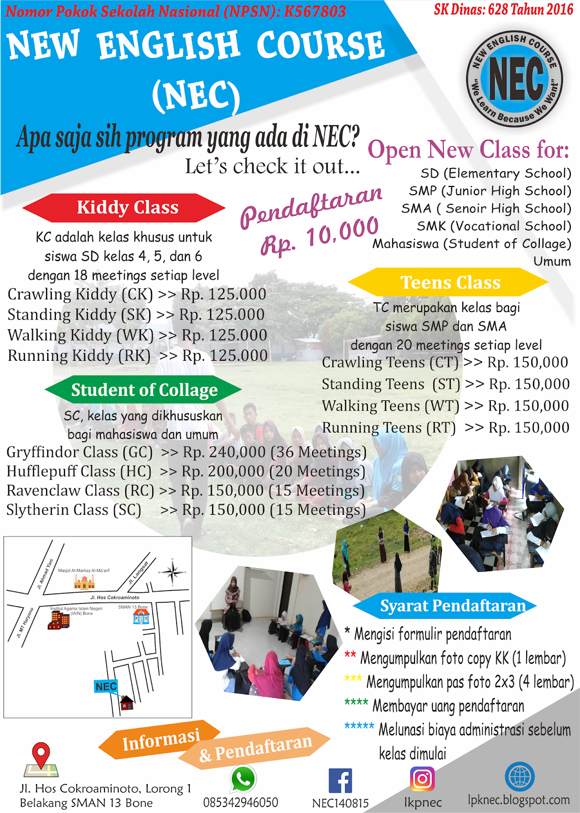 Brosur Lembaga Kursus New English Course di Bone dari Tahun ke Tahun - Necerz.com