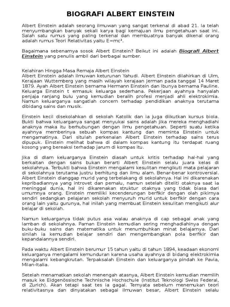 DOC) Biografi Albert Einstein – Sang Penemu Rumus E=mc | Andyan Adlu Prasetyaji - Academia.edu