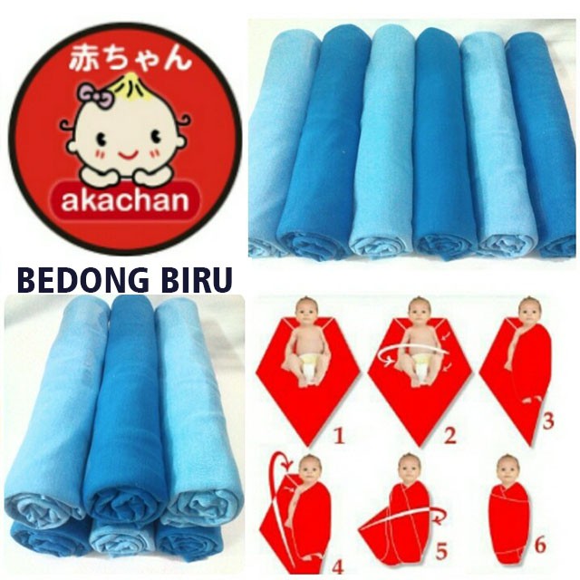 BLUE SERIES Akachan Baby Swaddle Bedong Kain Kaos Polos Biru Blue …