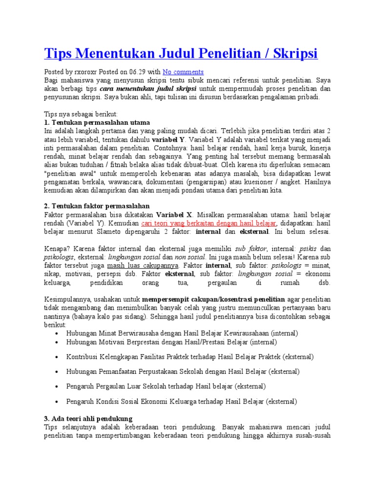 DOC) Tips Cara Menentukan Judul Skripsi | Supian Noor - Academia.edu