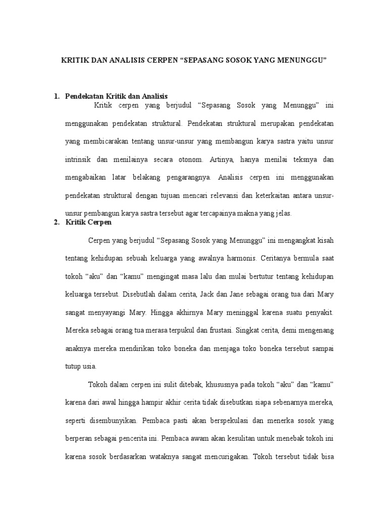 Analisis Dan Kritik Cerpen