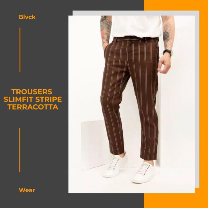 Jual celana kain pria tartan korea trouser formal Slim fit casual W49 - Black stripes, 29 - Jakarta Barat - BlvckWear | Tokopedia