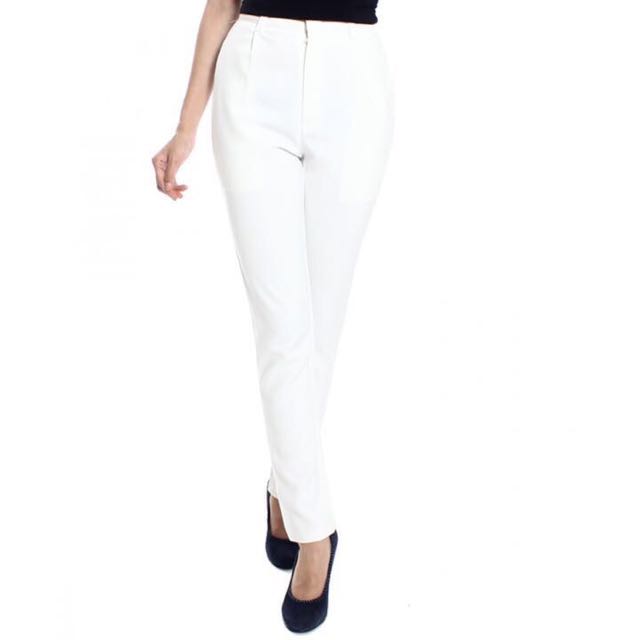Celana Kain PREMIUM Pencil Pants White Trousers Korea, Olshop Fashion, Olshop Wanita on Carousell
