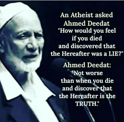 X Guy on Twitter: “Atheist bertanya : “Apa kamu rasa jika kamu mati & dapat tahu akhirat adalah suatu penipuan?” Sheikh menjawab : “Tidak seteruk kamu yang bila kamu mati & kamu