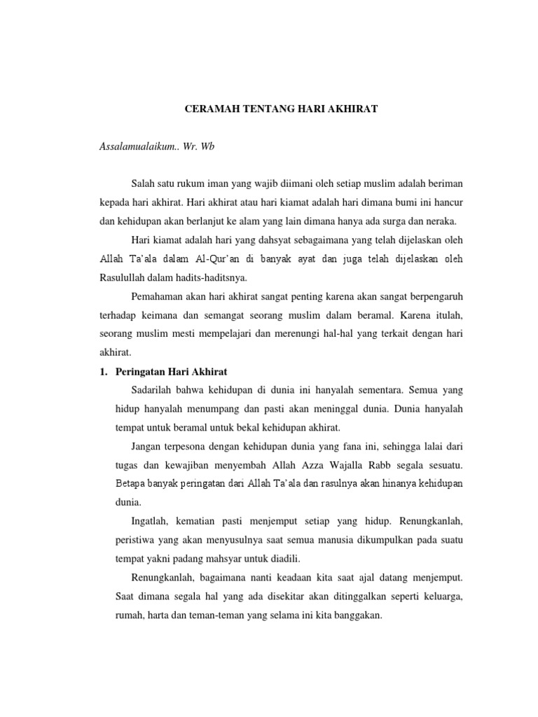 Ceramah Tentang Hari Akhirat