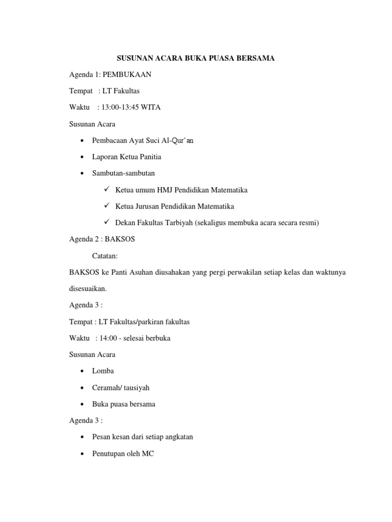 Susunan Acara Buka Puasa Bersama