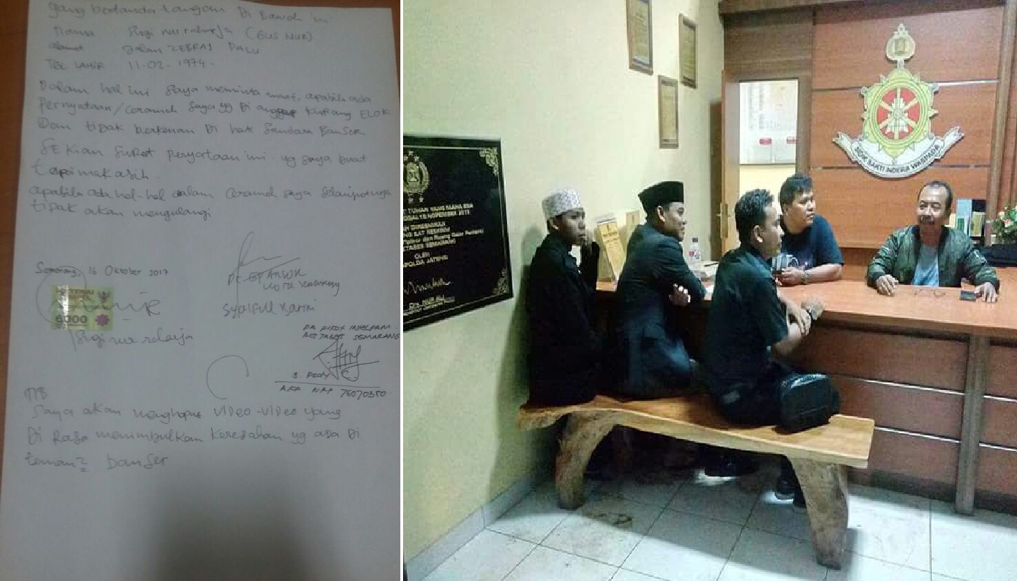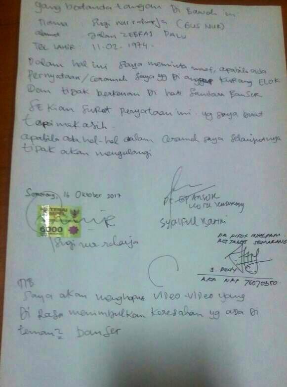 Disaksikan Banser, Gus Nur alias Sugi Nur Raharja Minta Maaf Diatas Materai
