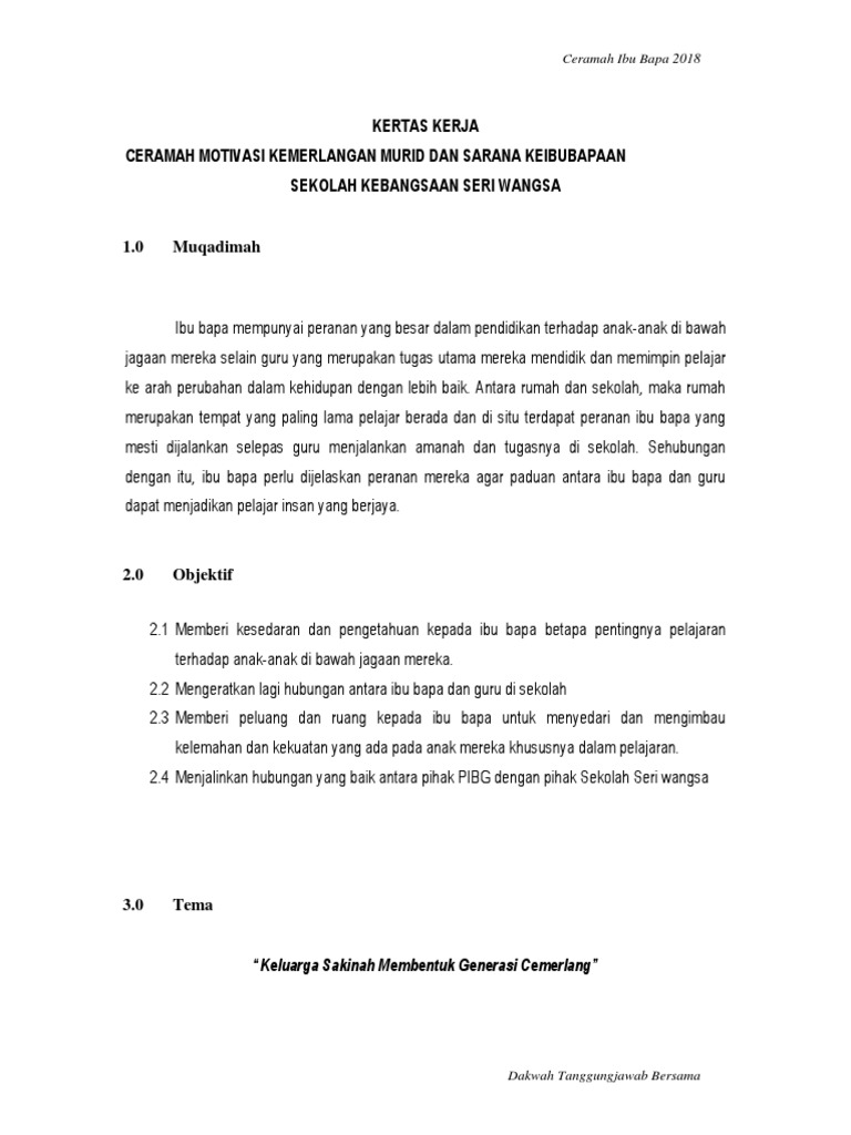 Kertas Kerja Motivasi Ibu Bapa 2018