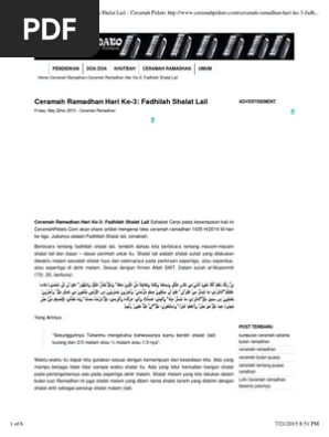 DOC) Ceramah Ramadhan Hari Ke-3: Fadhilah Shalat Lail | nunung …