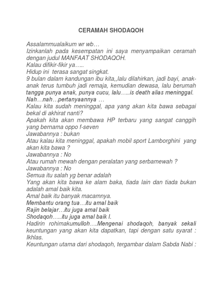 Teks Pidato Keutamaan Infaq Dan Shodaqoh