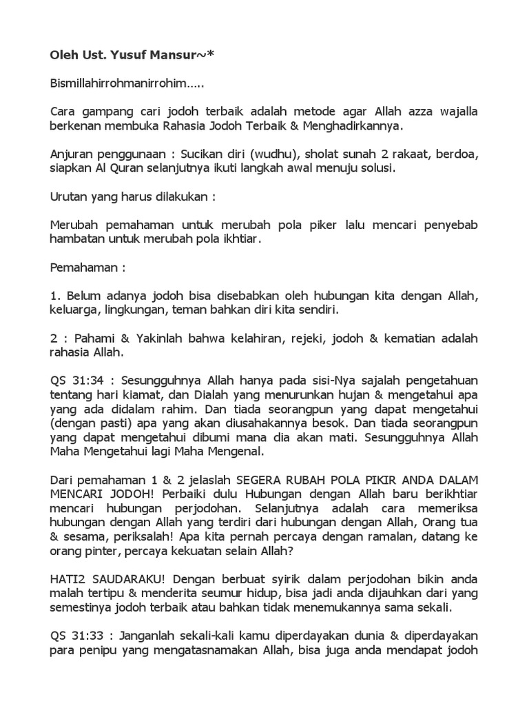 Cara Cepat Dapat Jodoh dengan Yakin - Dapat Jodoh Ust Yusuf Mansur …