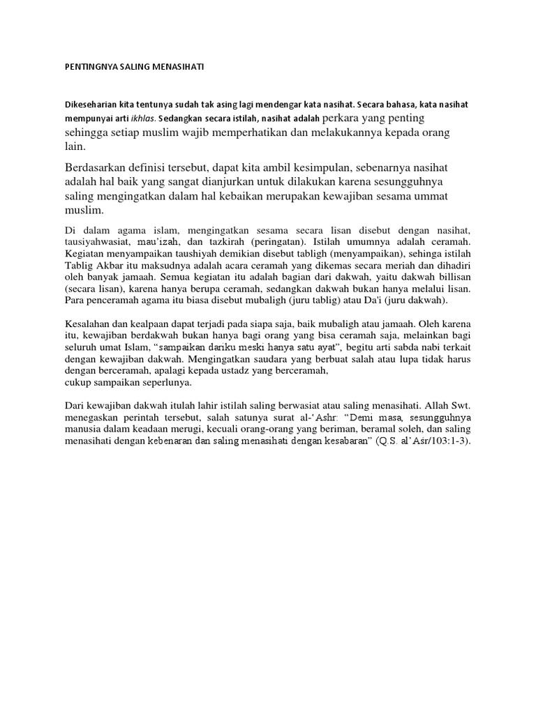 DOC) Kultum Harian Islam (saling menasehati dalam kebaikan | lita …
