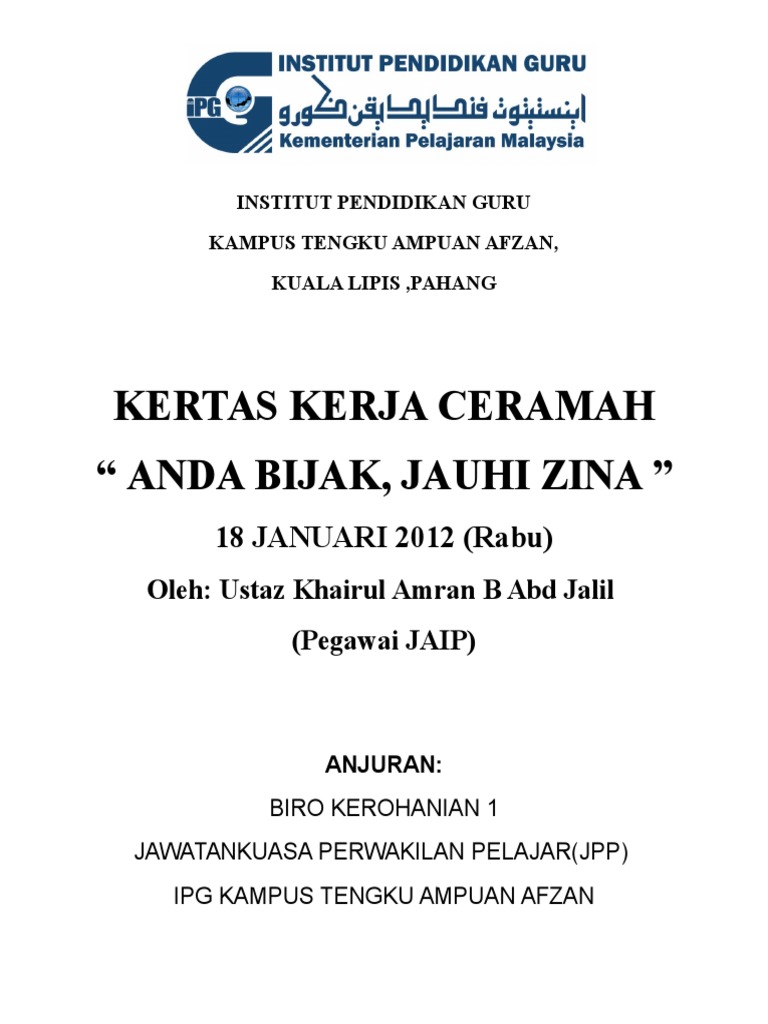 Kertas Kerja Anda Bijak Jauhi Zina (1)