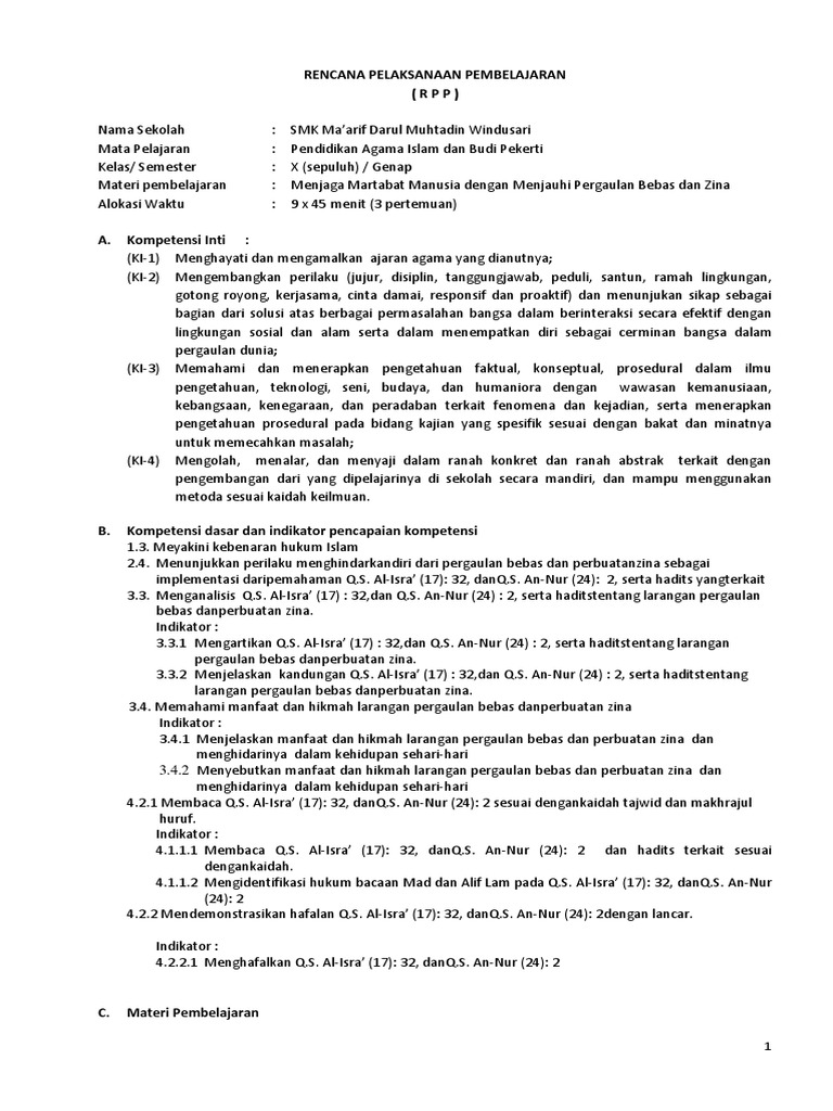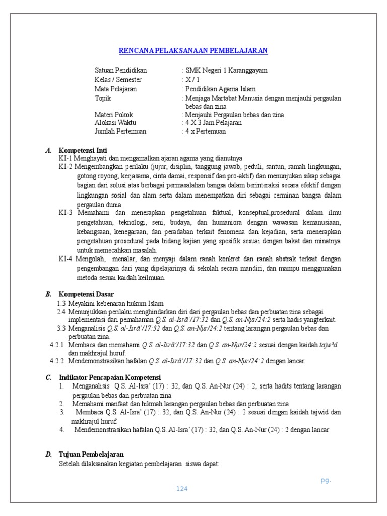 os2kangkung: RPP PAI BAB PERGAULAN BEBAS DAN PERBUATAN ZINA KELAS 10