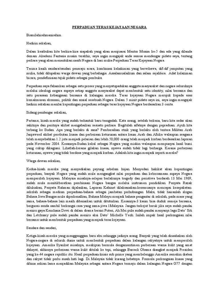 DOC) Teks Pidato : Muafakat Membawa Berkat | Nur Asilah Safa Sinin - Academia.edu