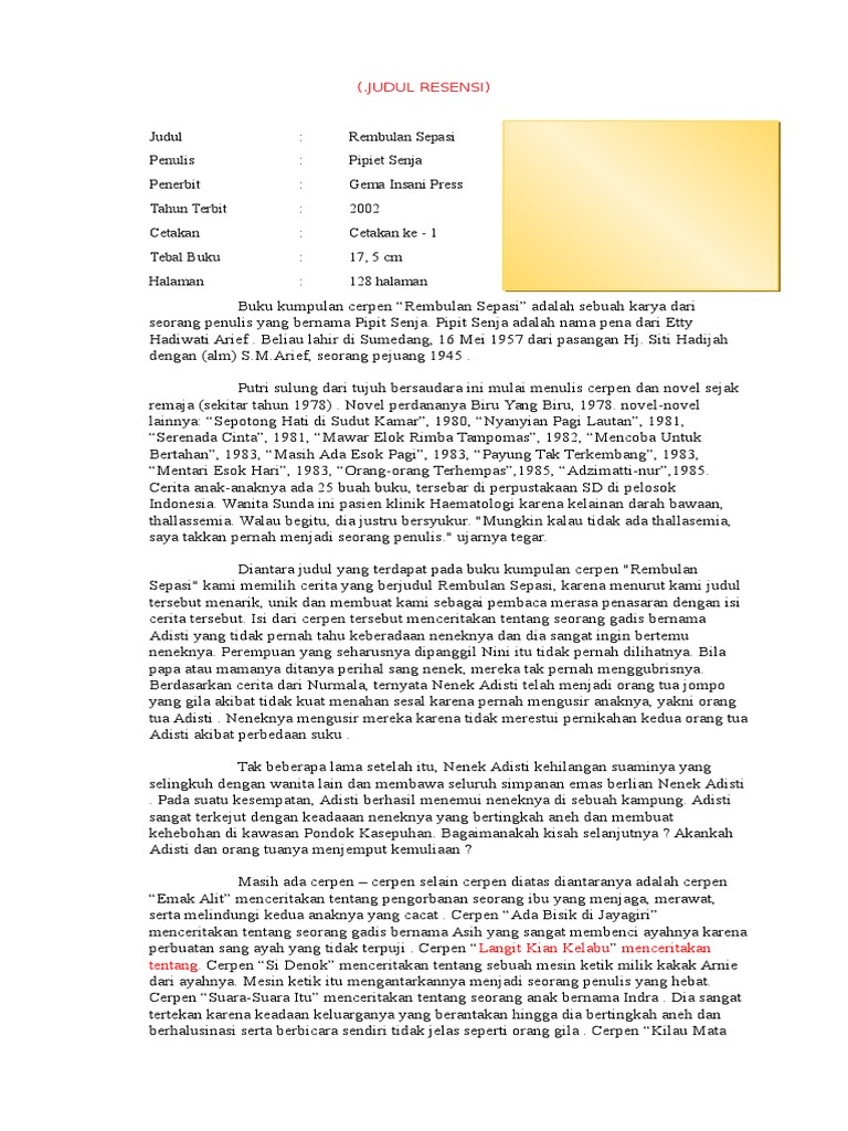 DOC) Contoh Resensi Cerpen | Dimitri Inzaghi - Academia.edu