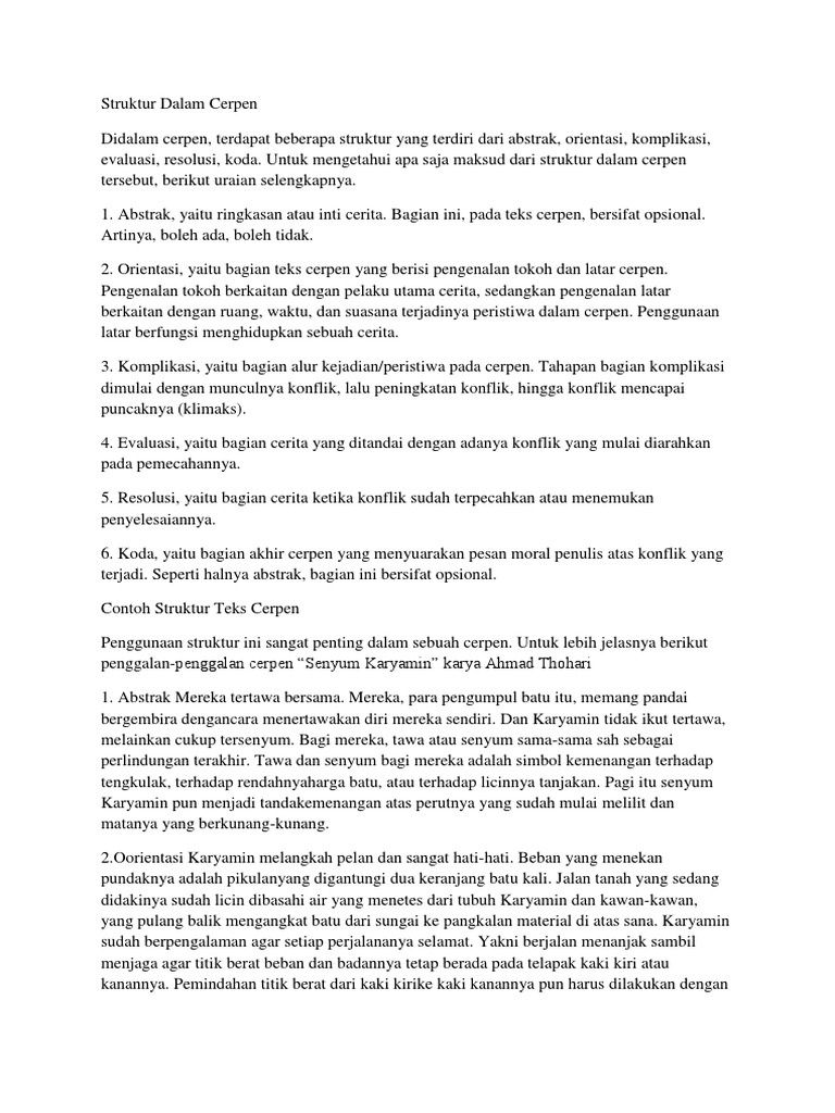 Contoh Cerpen Beserta Strukturnya Abstrak Orientasi Komplikasi Evaluasi Resolusi Koda