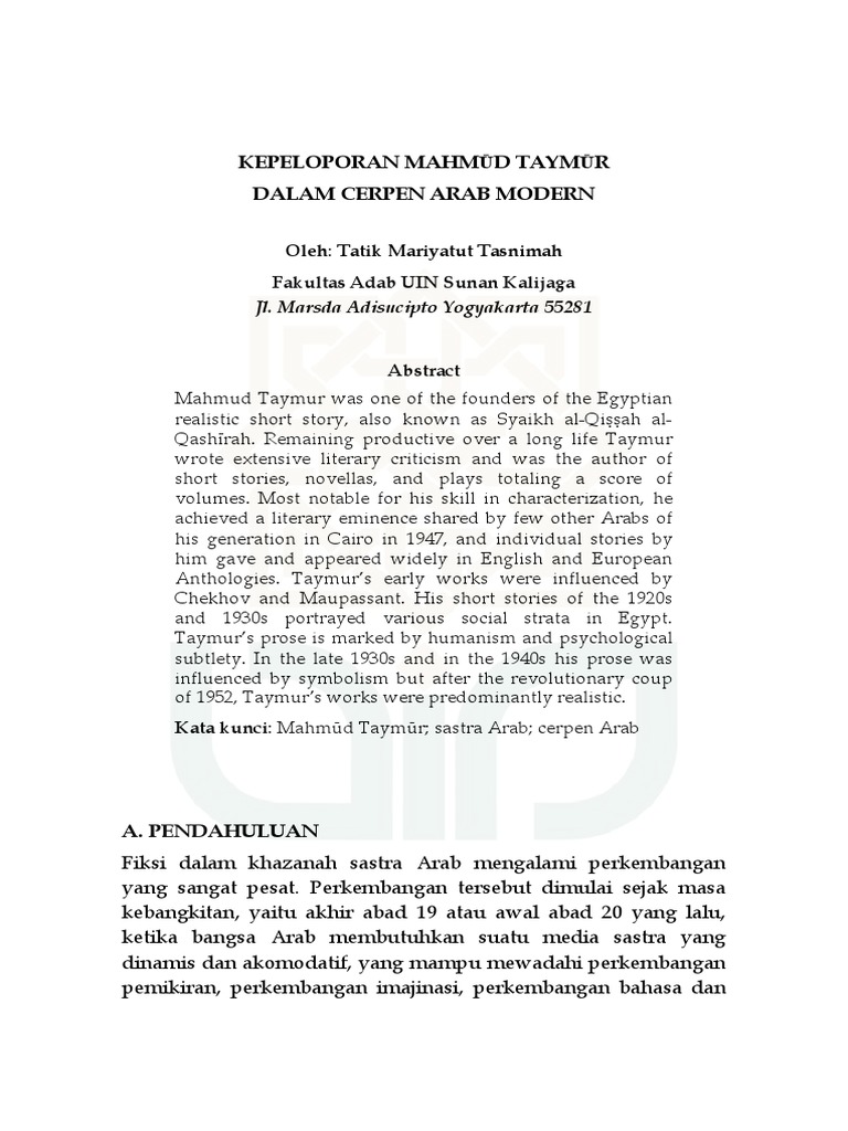 PDF) KEPELOPORAN MAHMD TAYMR DALAM CERPEN ARAB MODERN