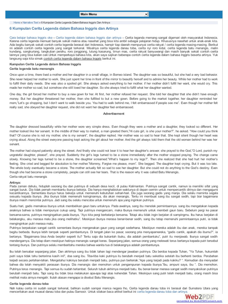 Contoh Cerita Legenda Dalam Bahasa Inggris Dan Terjemahannya
