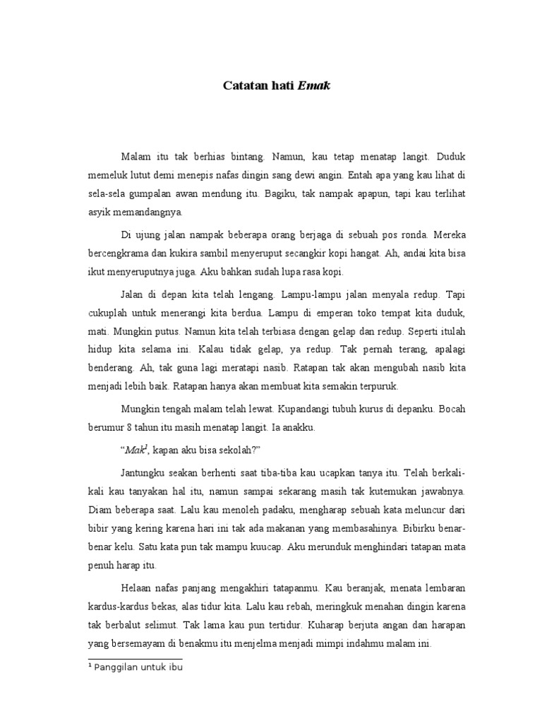Cerpen catatan hati emak