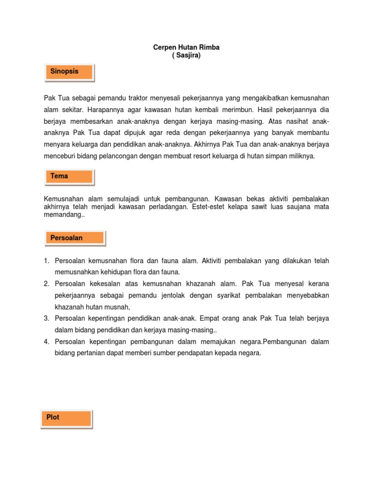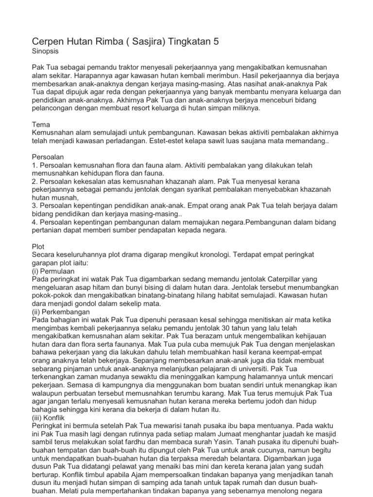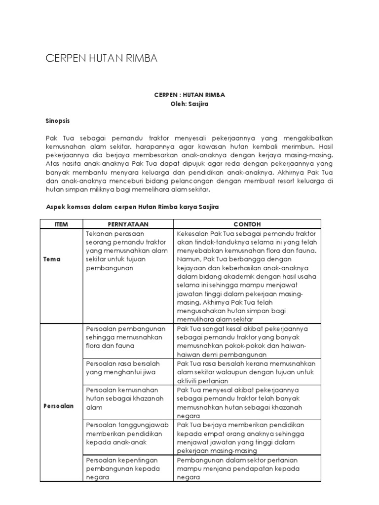 Contoh Teknik Bedah Karya Petikan Cerpen Hutan Rimba - [PDF Document]