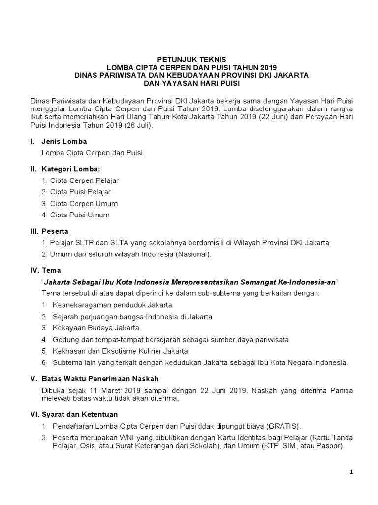 Petunjuk Teknis Lomba Cerpen Dan Puisi