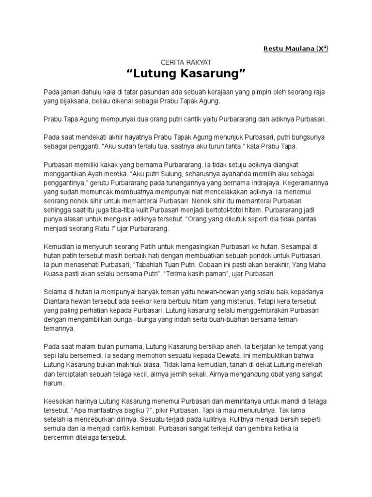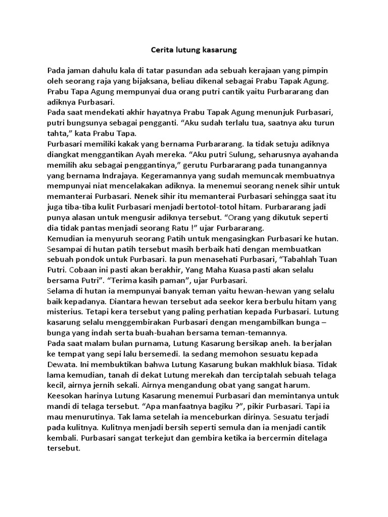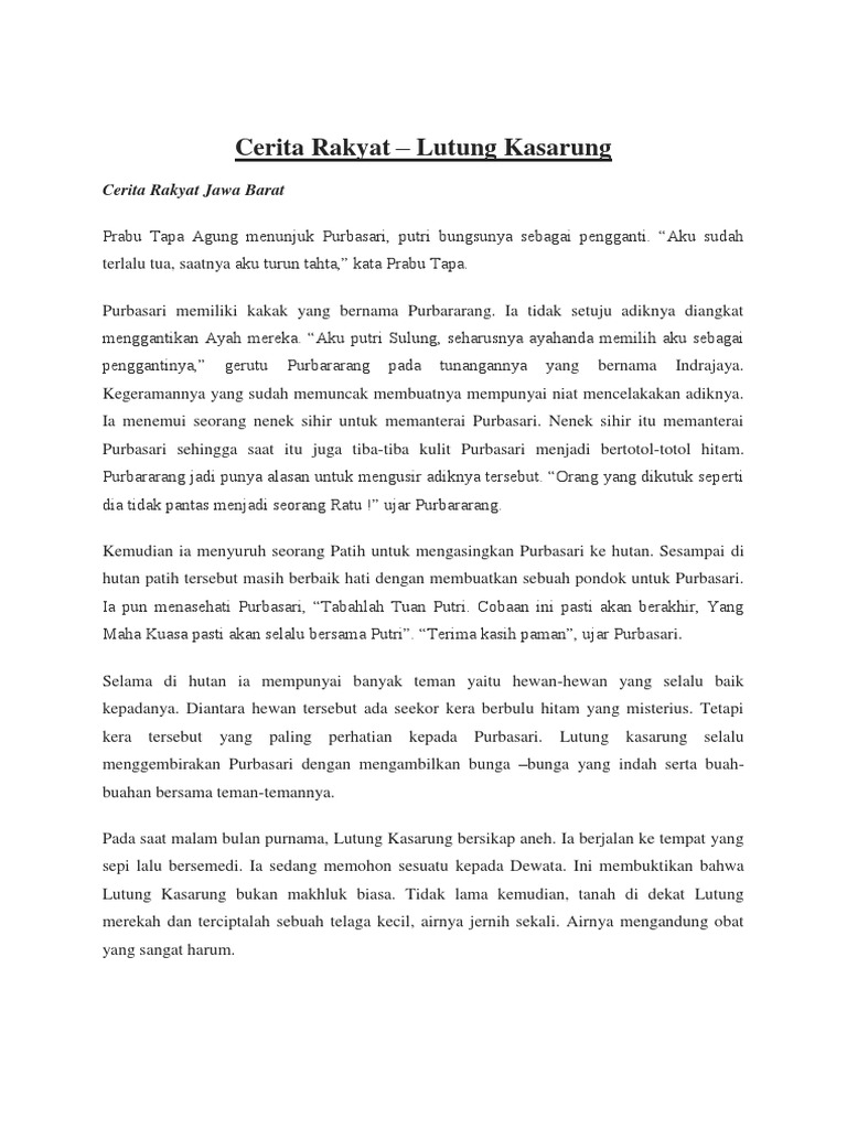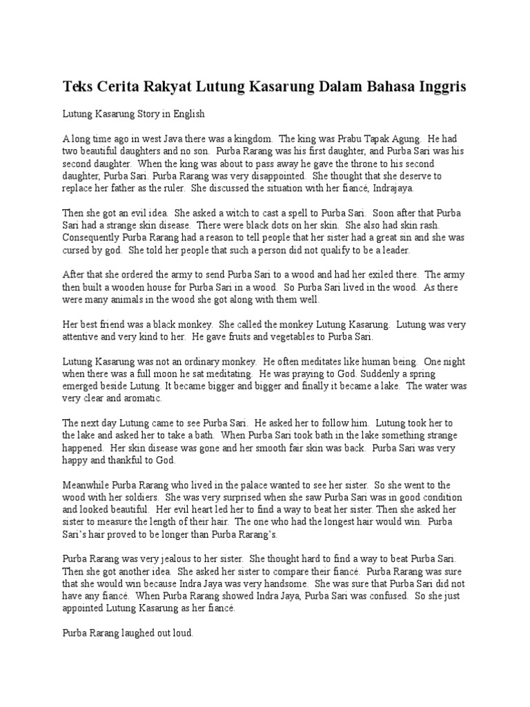 Cerita Rakyat Lutung Kasarung Bahasa Inggris Indonesia - Contoh …