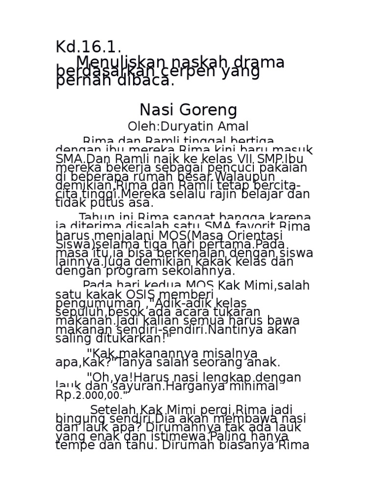 unsur intrinsik berjudul nasi goreng kelas 9 bse - Brainly.co.id