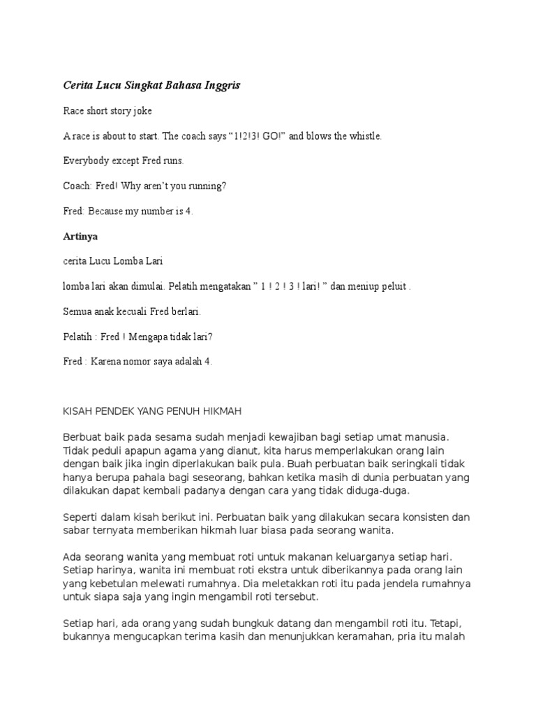 Kumpulan Cerita Lucu: Contoh Cerpen Dalam Bahasa Inggris Dan Artinya