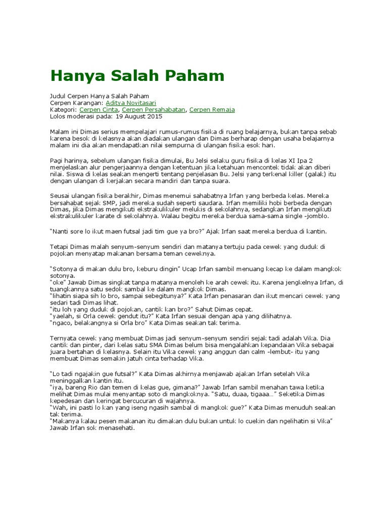 Hanya Salah Paham: Aditya Novitasari Cerpen Cinta Cerpen …