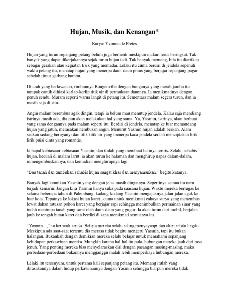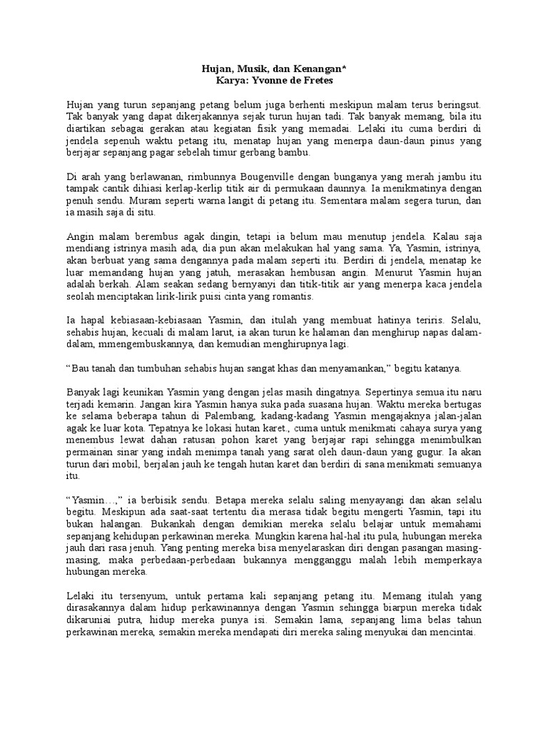 Apa saja unsur intrinsik dari cerpen yang berjudul Hujan musik dan …