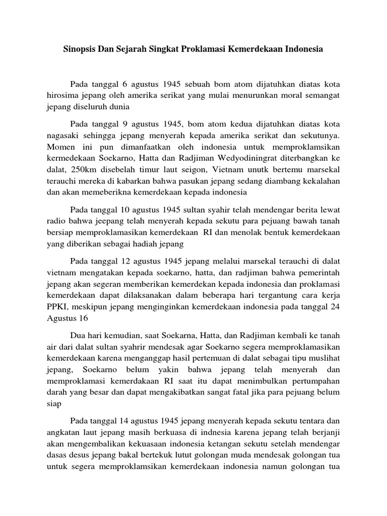 Sinopsis Dan Sejarah Singkat Proklamasi Kemerdekaan Indonesia