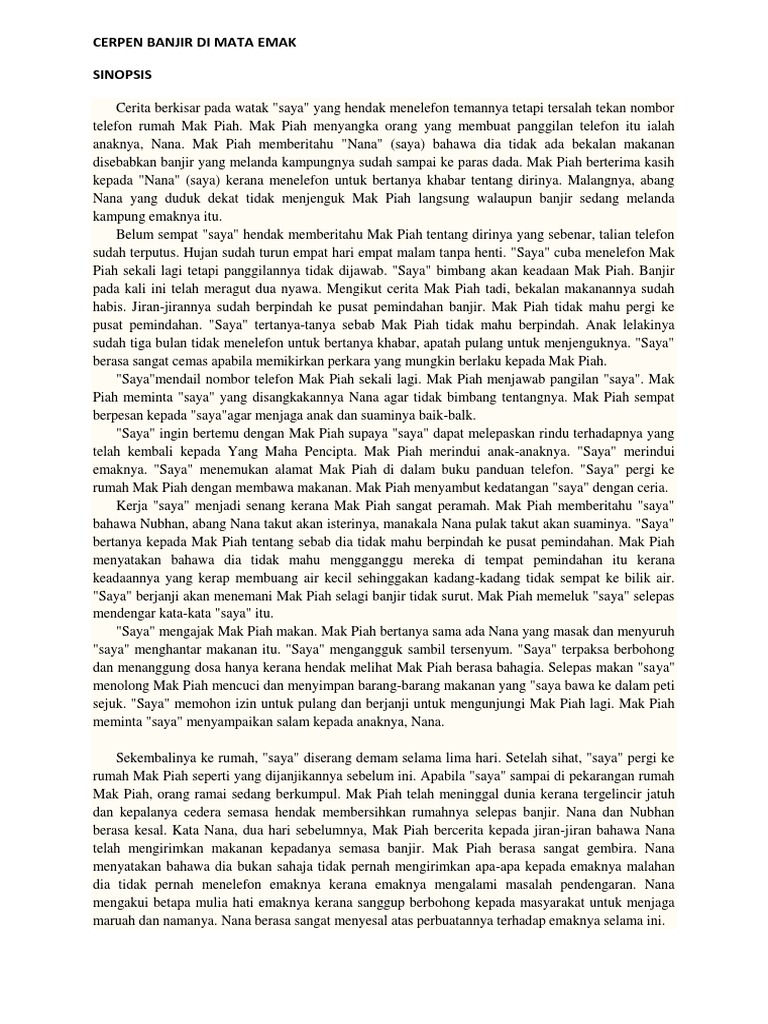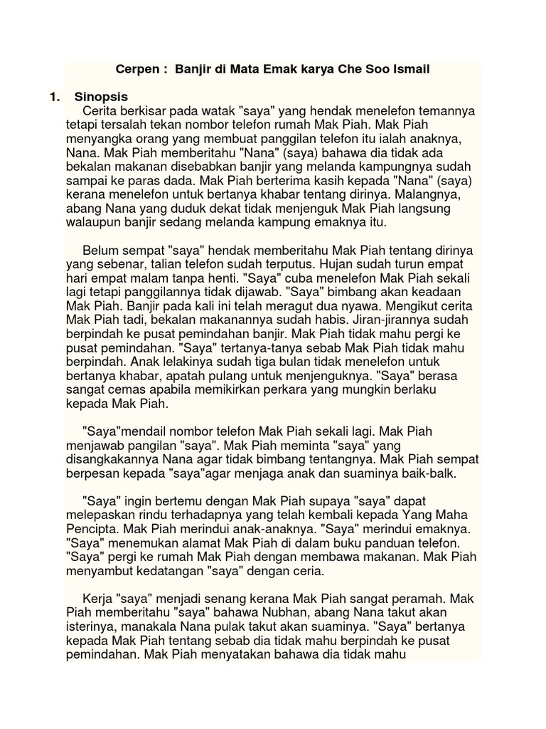 DOC) Cerpen : Banjir di Mata Emak karya Che Soo Ismail | Ain Anuar - Academia.edu