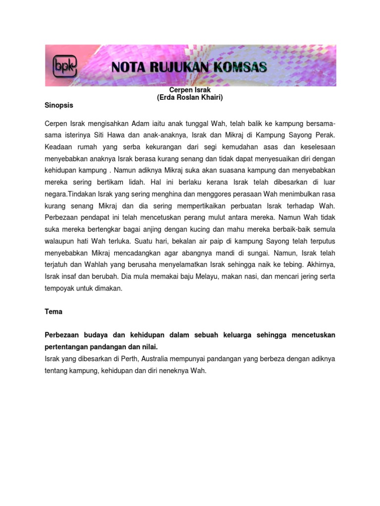 Cerpen Israk (Erda Roslan Khairi) Sinopsis