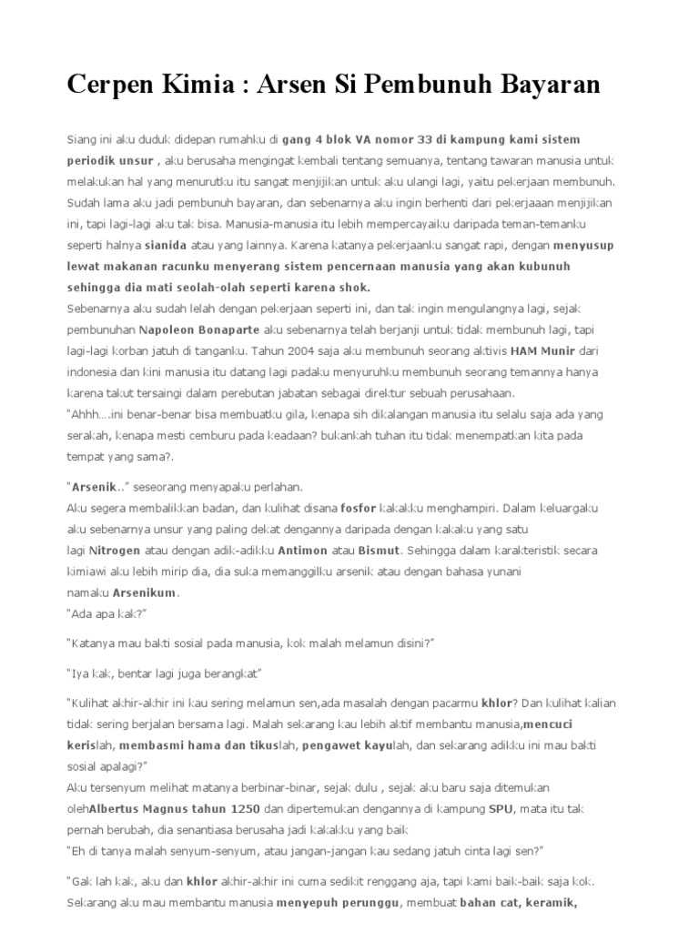 DOC) Cerpen Kimia : Arsen Si Pembunuh Bayaran | Prof. A. S. …