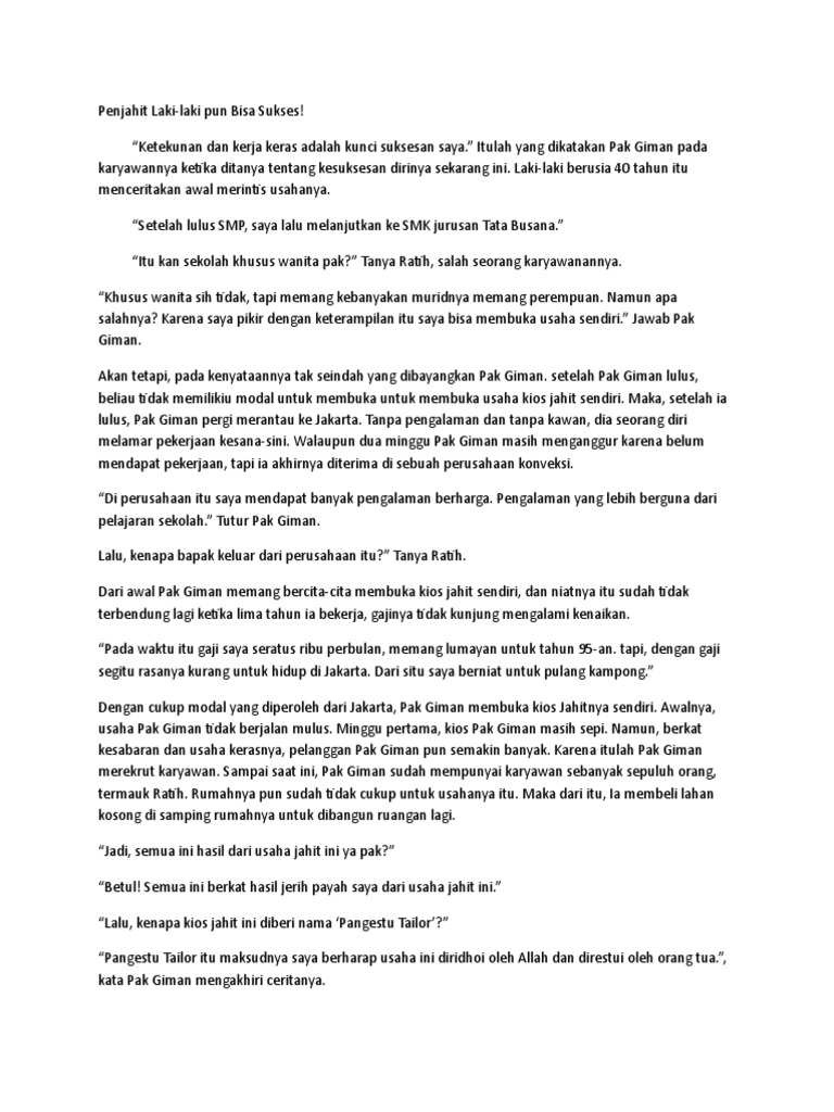 Contoh Cerpen Wirausaha Yang Sukses - SRasmi