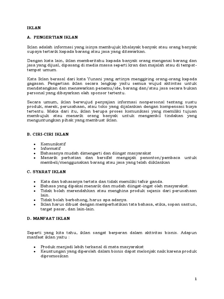 Pengertian Dan Ciri IKLAN