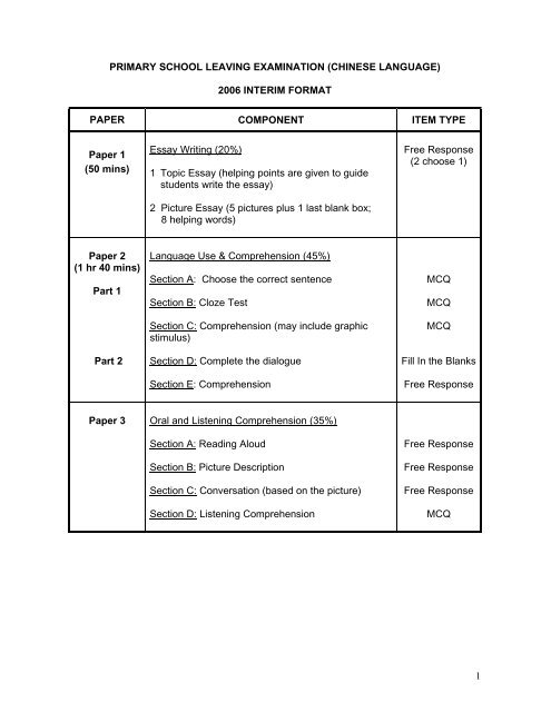 1 PRIMARY SCHOOL LEAVING EXAMINATION (CHINESE …