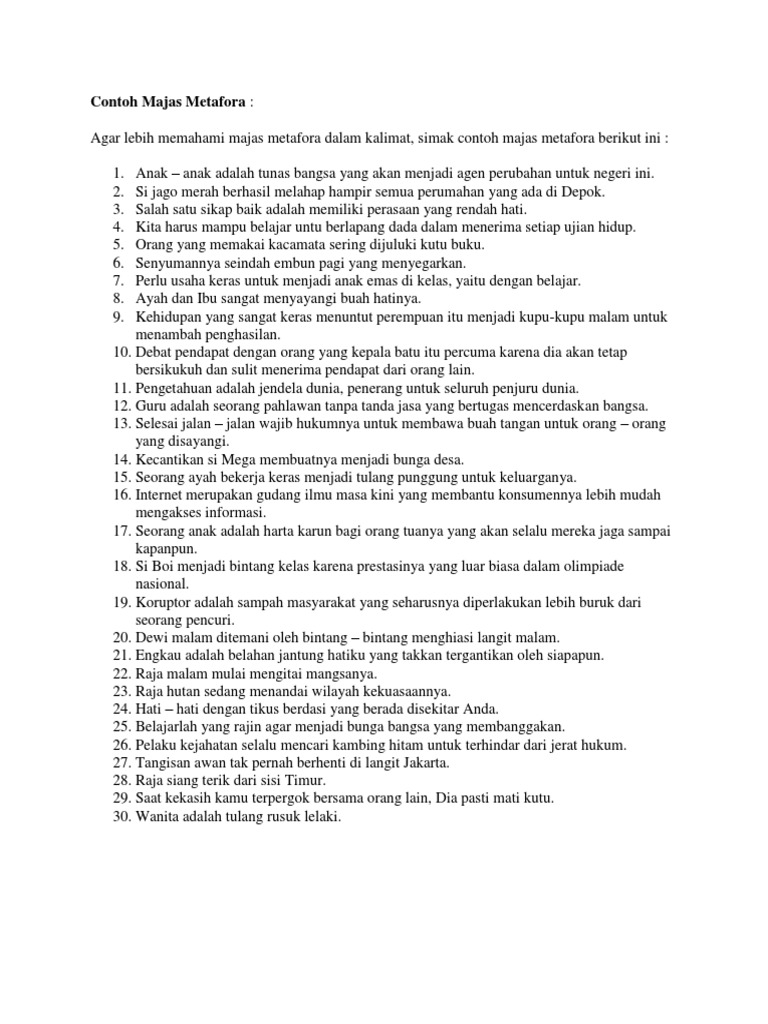 20 Contoh Kalimat Majas Metafora Bahasa Indonesia | Fujianto21-chikafe